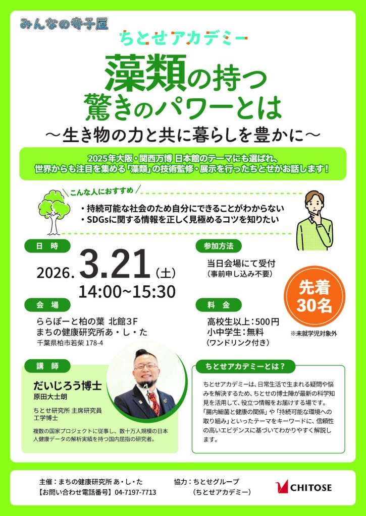 みんなの寺子屋「藻類のもつ驚きのパワーとは~生き物の力とともに暮らしを豊かに~」